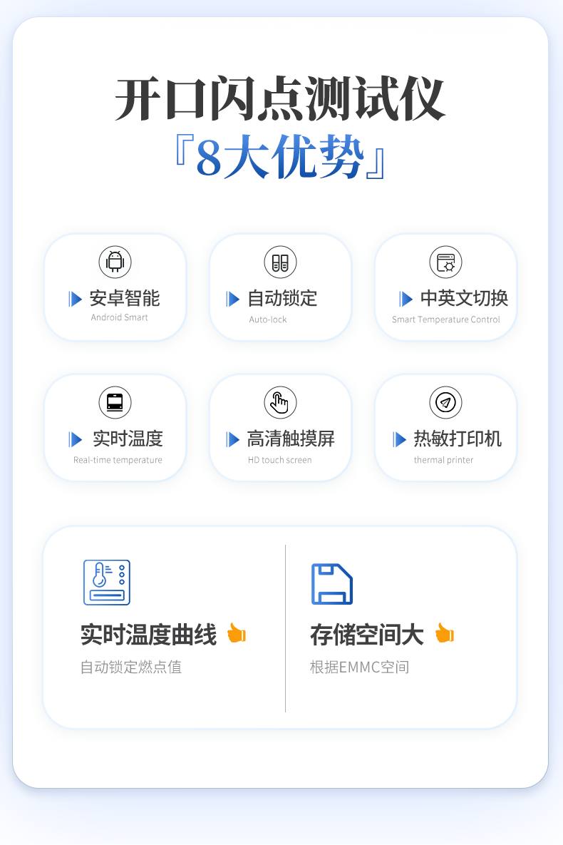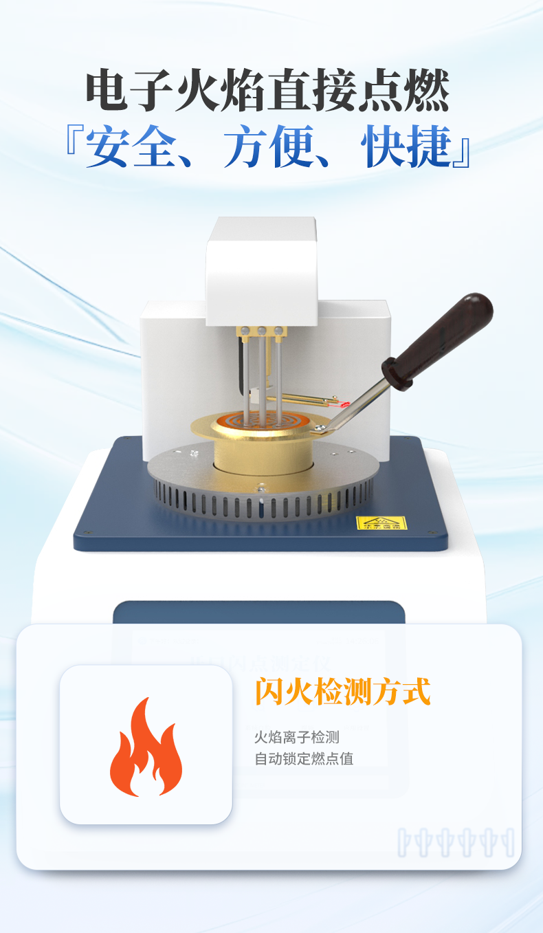 全自动开口闪点和燃点测定仪主要用于石油产品和其他易燃液体在特定条件下,与空气混合后遇火源发生闪火和燃烧的**温度的仪器。