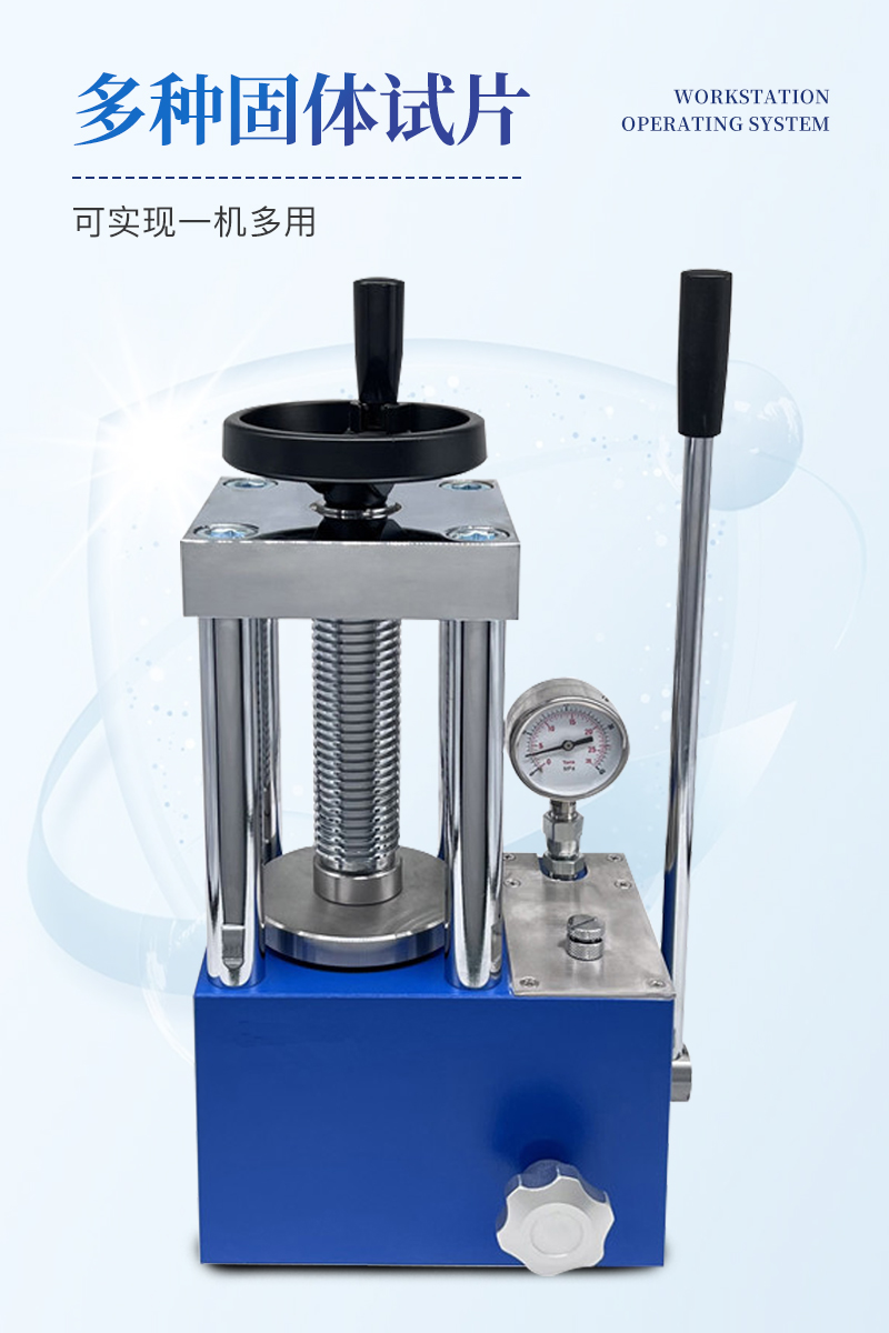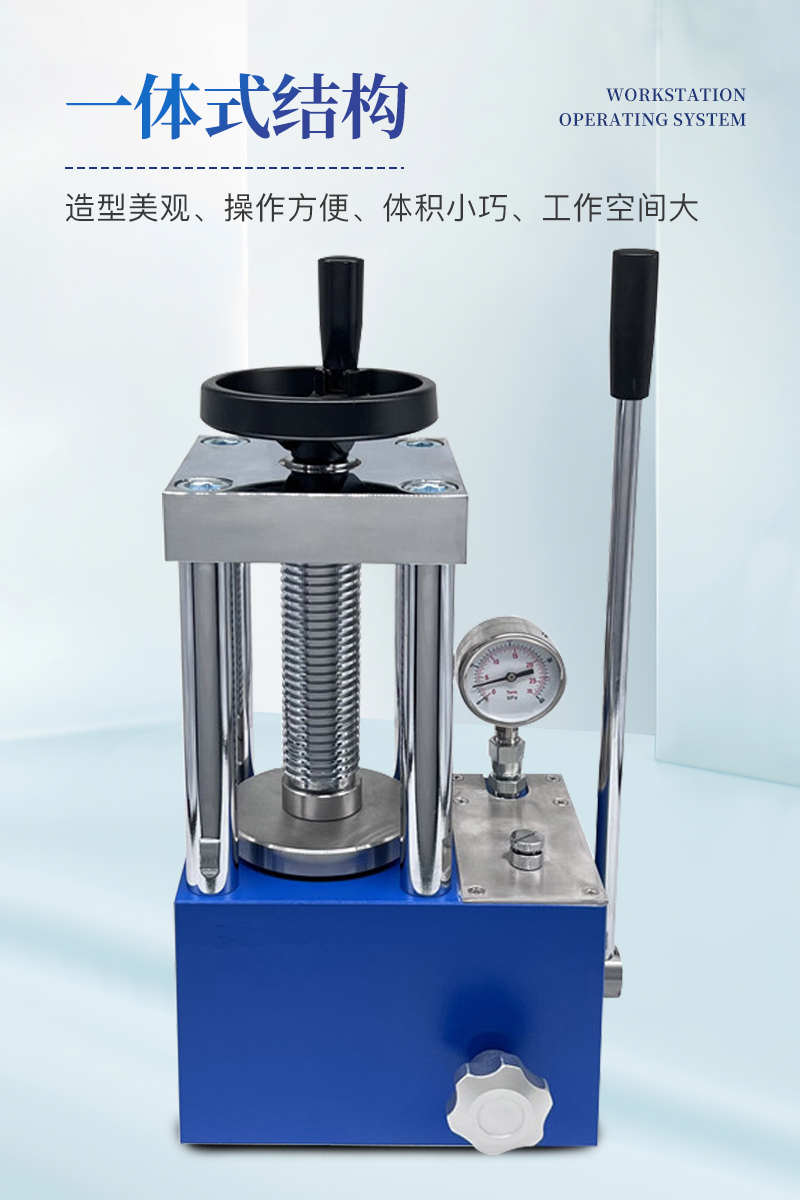手动压片机该机采用一体式结构,手动液压驱动,两立柱设计,具有造型美观、操作方便、体积小巧、工作空间大等优点,非常适合拖进手套箱内使用;配上特定模具,可对各种粉末材料压制成型,广泛应用于科研、教学、检测、催化、制药等各个领域。