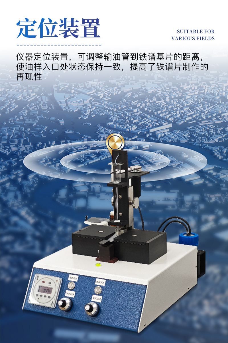 ?。?1)仪器定位装置,可调整输油管到铁谱基片的距离,使油样入口处状态保持一致,提高了铁谱片制作的再现性;