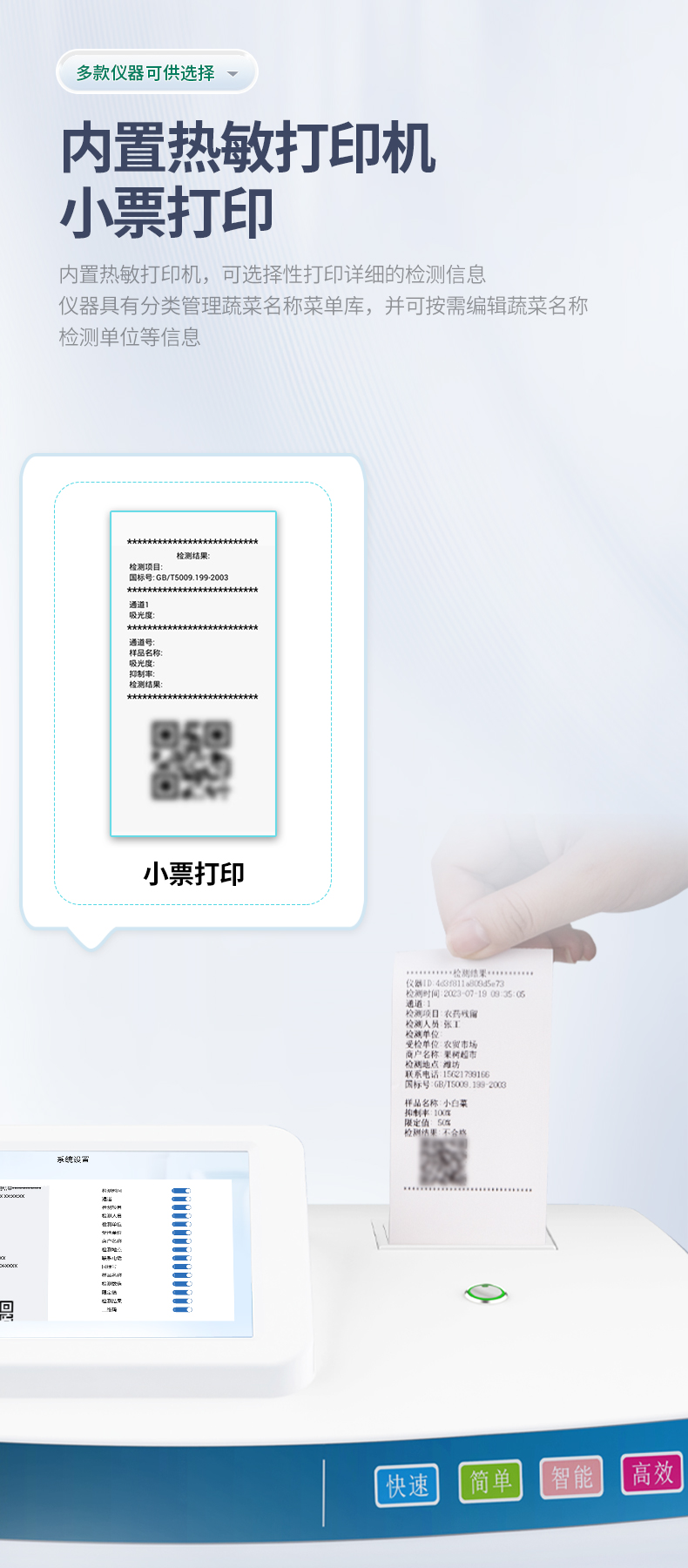 该仪器为三体仪器新研发一款农残快速检测仪,采用国标速测卡,使检测速度更快,操作更加简便。检测标准:依据国家标准方法(GB/T5009.199-2003)以及世界卫生组织WHO、世界粮农组织FAO残留农药检测标准、世界环境?;ぞ諩PA参照摄入量等要求来设计。