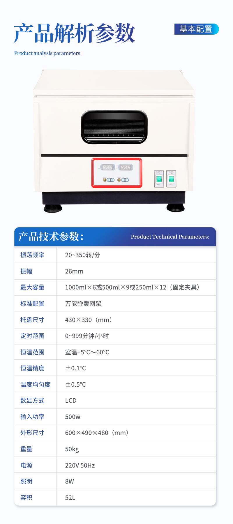 | 恒温范围 | 室温+5℃~60℃ |