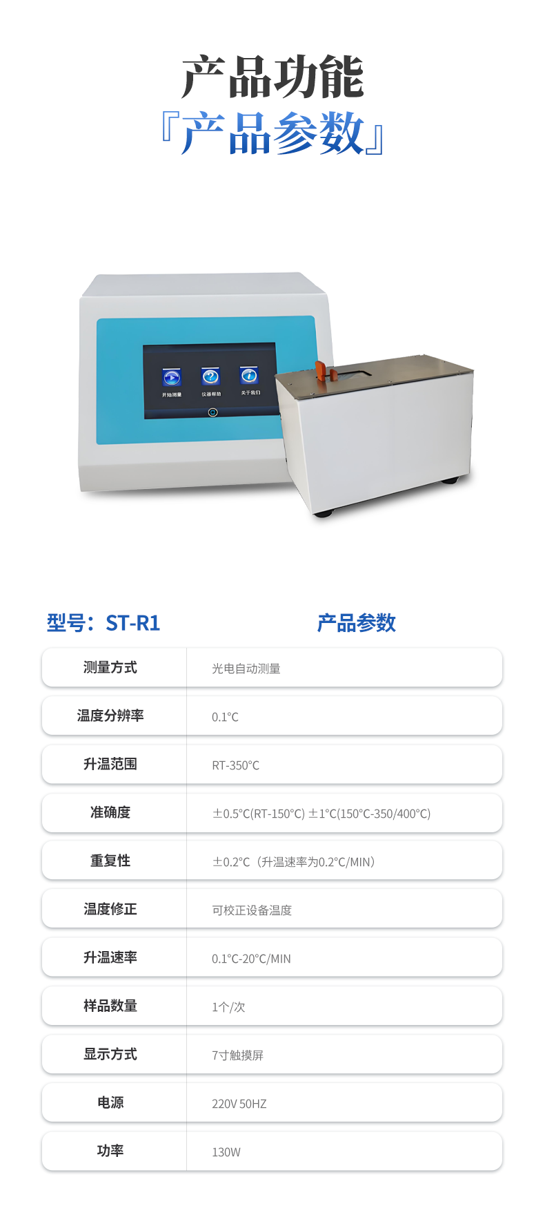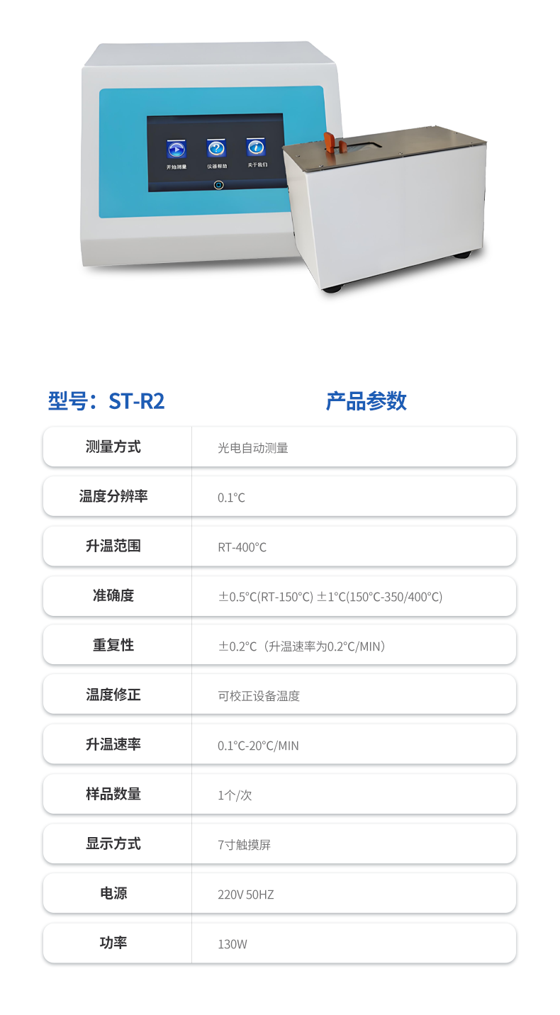 1. 7寸彩色触摸屏,直接显示滴点软化点温度。