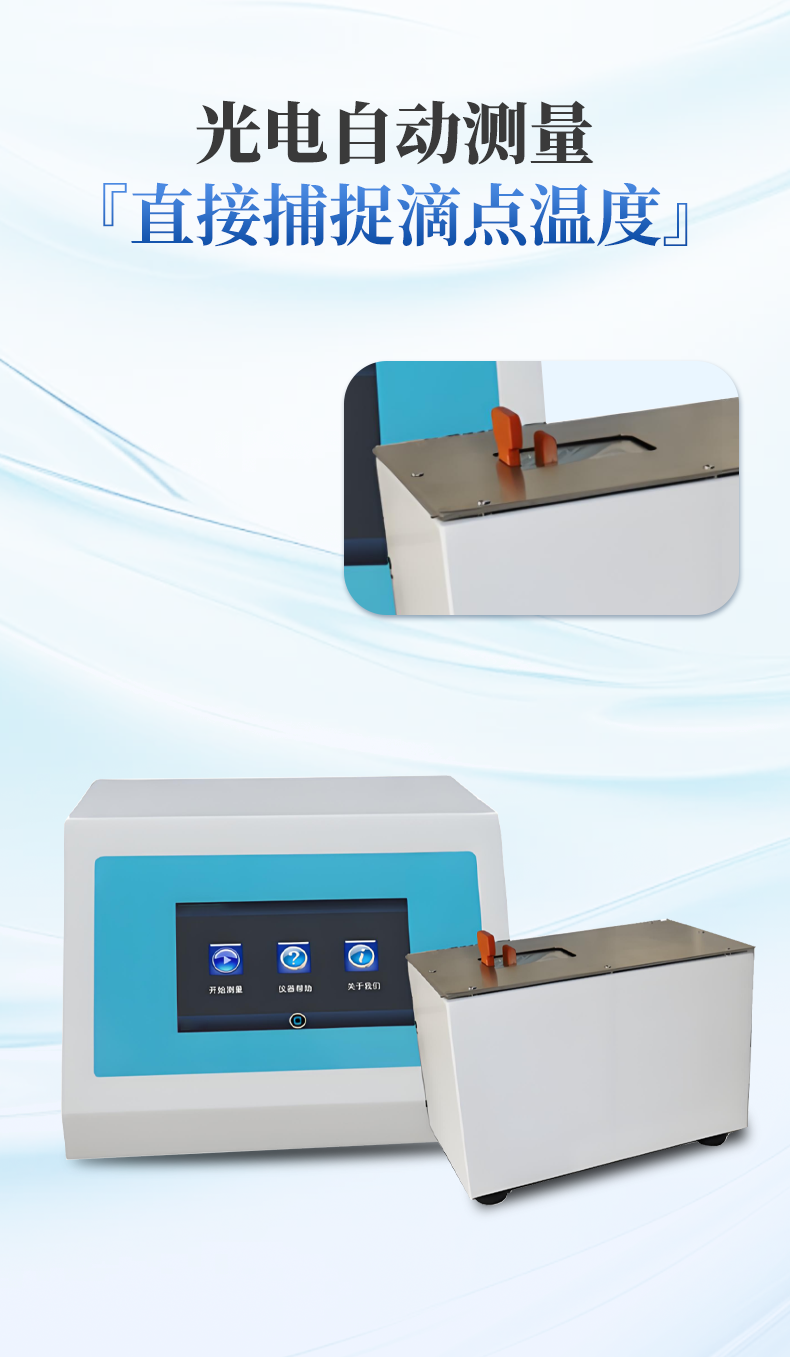 本仪器采用全电脑控制,全自动测量,通过光电技术,自动捕捉滴点温度。